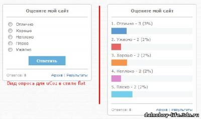В данном посте мы с вами разберем и установим новый вид опроса для uCoz в стиле Flat дизайна. Что такое стиль Flat (Flat дизайн)? Это новый довольно популярный в интернете сейчас тип веб-дизайна, главной особенностью которого является плоскость и юзабельность. Теперь поговорим об этом виде опроса для uCoz. Главная его особенность это плоскость — тот самый Flat дизайн. Выводится количество и процент проголосовавших, а также полоски опроса разноцветные, заточен под 14 возможных ответов. Также данный вид опроса в стиле Flat построен полностью на CSS, что делает его очень легким и не утяжеляющим страницу. Установка очень проста Установка: Для установки, ... Читать дальше » |