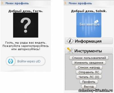 Создаем глобальный блок и вставляем туда код мини профиля Код <!-- Личный кабинет -->