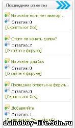 Создаем информер: Название: Статистика форума в блоке --> Раздел: Форум --> Способ сортировки: Последние обновленные темы --> Количество материалов: 5 --> Количество колонок: 1.