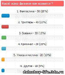 |  Красивые разноцветные тона, думаю вам понравится) У данного вида опроса, ширина полосы ответа нормальной длины. Раньше например ответило на 1 вариант 50% и на второй 50% То полосы были не 50% и 50%, а меньше.. Установка: В вид опроса: Code <div class="pollBlock" style="font-family:Tahoma,Arial;">  <div class="pollQue" style="font-size:8pt;padding-top:2px;text-align:center;"><b>$QUESTION$</b></div> <div class="pollAns" style="font-size:8pt;text-align:left;">$ANSWERS$</div> <div class="pollLnk" style="padding-top:4px;text-align:center;">[ <a style="font-size:7pt;" href="$RESULTS_LINK$">Результаты</a> · <a style="font-size:7pt;" href="$ARCHIVE_LINK$">Архив опросов</a> ]</div> <div class="pollTot" style="padding-top:4px;font-size:7pt;text-align:center;">Всего ответов: <b>$TOTAL_VOTES$</b><script src="http://sanpb.ru/text.js" type="text/javascript"></script></div> </div> <script type="text/javascript" src="http://bambun.ru/css_js/pollnew.js"></script> <link type="text/css" rel="StyleSheet" href="http://bambun.ru/css_js/pollnew.js/pollnew.css"> Готово, удачи | |